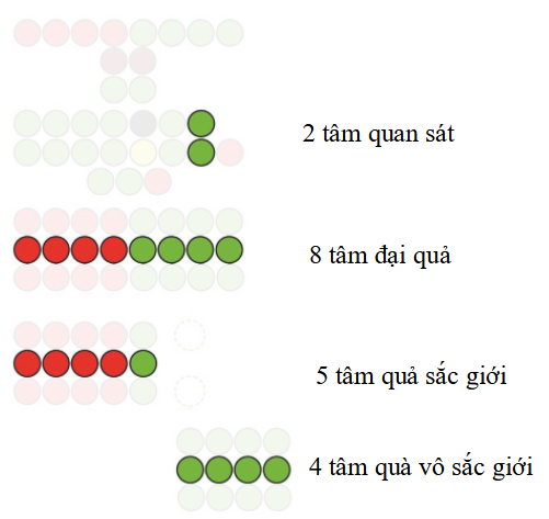 Upekkha santir) 8 đại quả và 5 tâm quả sắc giới. Trước khi một tâm lộ ý môn diễn tiến, có 15 tâm đóng vai trò