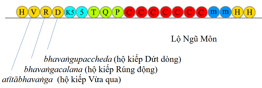 Vis: Trong tâm lộ ngũ môn, có 15 tâm đóng vai trò của 3 tâm hữu phần vừa kể, đó là: 2 quan sát xả thọ (