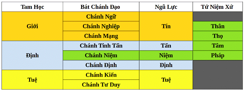 Do đó, nếu tu tập Bát Chánh Đạo thì phải tu tập Tứ Niệm Xứ. Tứ Niệm Xứ là đoạn đầu của Bát Chánh Đạo, còn Bát Chánh Đạo là đoạn chót, là Đạo cuối cùng để Níp Bàn. Cả hai chỉ là một, chỉ khác nhau ở khía cạnh phần đầu và phần cuối mà thôi.