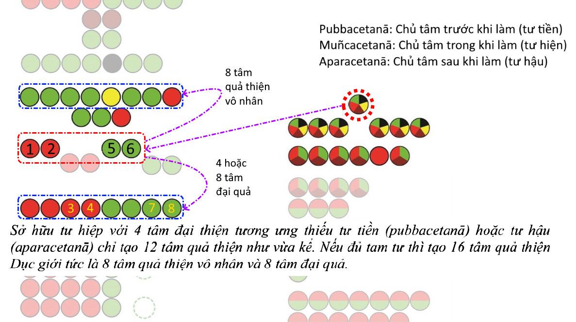 ![]() Tư (cetanā) Tư (cetanā) là sự cố ý, cố quyết, điều hành pháp đồng sanh. (trích Triết Học A Tỳ Đàm) Tư (cetanā): Ngoại trừ Thọ và Tưởng, tâm sở này được xem là tâm sở chủ lực để điều động các tâm sở đi cùng. Nó đưa từng tâm sở hướng về mục đích nào đó của hành động, từ pháp Hiệp thế (lokiya) đến Siêu thế (lokuttara). Chính vì lẽ này, Đức Phật dạy rằng tâm sở Tư là yếu tố then chốt để tạo nghiệp. (trích Vô Tỷ Pháp Tập Yếu - TL Tịnh Sự - tb.2019) Tư (cetanā) (bắt nguồn từ √citi + e = ceteti, cetayati, cetanā) Tâm (citta) mang ý nghĩa là nhận biết, trong khi cetanā (tư) được dùng với ý nghĩa là cố quyết, sắp xếp, đốc thúc (abhisandhāna) và càng, tích thêm, cố thêm (āyūhana). Tâm sở tư (cetanā cetasika) là cố quyết và đốc thúc pháp câu sanh cùng khắn khít với cảnh. Hay tư là sự cố quyết hành động phối hợp với những trạng thái danh pháp đồng sanh với chính nó biết theo cảnh của tâm; tợ như một trưởng tông hay tợ như một chủ nông trại luôn làm tròn những nhiệm vụ của anh ấy và kiểm soát việc làm của người khác cho được tốt đẹp. Tư làm tròn phận sự của nó và kiểm soát, điều chỉnh phận sự của những danh tâm sở câu sanh với nó. Tư hành động theo những tâm sở tâm, hành động trong việc bắt cảnh và theo đuổi để hoàn thành nhiệm vụ; do đó, tư là pháp cố quyết hành động. Theo Aṅguttara Nikāya – Tăng Chi bộ kinh 6. Mahāvaggo Đức Phật có dạy: “Cetanāhaṃ, bhikkhave, kammaṃ vadāmi. Cetayitvā kammaṃ karoti – kāyena vācāya manasā.” Tư chính là nghiệp (kamma). Do đó Ta nói, này chư Bhikkhu, ngay khi tư sinh khởi, chúng sanh tạo nghiệp qua thân, khẩu, ý. Nghiệp có hai loại là nghiệp câu sanh và nghiệp biệt thời. Nghiệp câu sanh là tâm sở tư (cetanā) cùng sanh với tâm (citta) v.v… Nghiệp biệt thời (nānakkhanikakamma) là mãnh lực sẽ tạo quả và sắc nghiệp do tâm sở tư phối hợp với tâm thiện hay bất thiện để ảnh hưởng lại. Do đó, tư đóng vai trò quan trọng trong tất cả hành động – nó cố quyết dù cho hành động thiện hay bất thiện. ‘Tư’ là tâm sở tâm quan trọng nhất trong tâm hiệp thế (lokiya), trong khi trí (paññā) là tâm sở tâm quan trọng nhất trong tâm siêu thế (lokuttara). Ngoại trừ thọ (vedanā) và tưởng (saññā), tất cả 50 tâm sở tâm còn lại, với tư đứng đầu, được chỉ rõ là hành uẩn (saṅkhārakkhandha) là 1 trong 5 uẩn hiện hữu. Katamā tasmiṃ samaye cetanā hoti? Yā tasmiṃ samaye tajjāmanoviññāṇadhātusamphassajā cetanā sañcetanā cetayitattaṃ -ayaṃ tasmiṃ samaye cetanā hoti. Tư trong khi có ra sao? Khi nào có sự tính làm, cách định hành động, thái độ cố quyết hành động sanh từ xúc phối hợp cùng ý thức giới. Như thế gọi là tư có trong khi ấy. Bốn ý nghĩa (aṭṭha) của tâm sở tư: - Trạng thái là cố quyết hay cố ý (cetayitalakkhaṇā). - Phận sự là lo cách bắt cảnh của pháp câu sanh (āyūhanarasā). - Thành tựu là sắp đặt cho pháp câu sanh (saṃviddhanapaccupaṭṭhānā). - Nhân cận là có 3 uẩn ngoài ra (sesakhandhattayapadaṭṭhānā) tức là thọ uẩn, tưởng uẩn và thức uẩn. Tham khảo: Tư , nói theo thời gian thực hiện hay tạo nghiệp thì có ba, đó là tư tiền, tư hiện và tư hậu. Tư này khi phối hợp với tâm đổng lực (javana) lúc trước khi hành động, gọi là “tư tiền”, ngay khi hành động gọi là “tư hiện” và sau khi hành động gọi là “tư hậu”. ![]() ![]() ![]() ![]() Nếu nói theo Dị thời ‘nghiệp duyên’ (kammapaccayo) ở “Chương 8: Paccaya”, thì: Kusalo dhammo abyākatassa dhammassa nānākkhaṇikakammapaccayena paccayo. Pháp thiện trợ pháp vô ký bằng dị thời nghiệp duyên. Tư thiện trợ những uẩn quả và sắc nghiệp bằng Dị thời nghiệp duyên, có pháp thực tính là tâm sở tư phối hợp với tâm thiện sanh trước trong đời này hay đời trước diệt rồi để lại chủng tử (bīja) trợ tạo tâm quả thiện; kể cả tâm sở và sắc nghiệp. Một cách nữa: