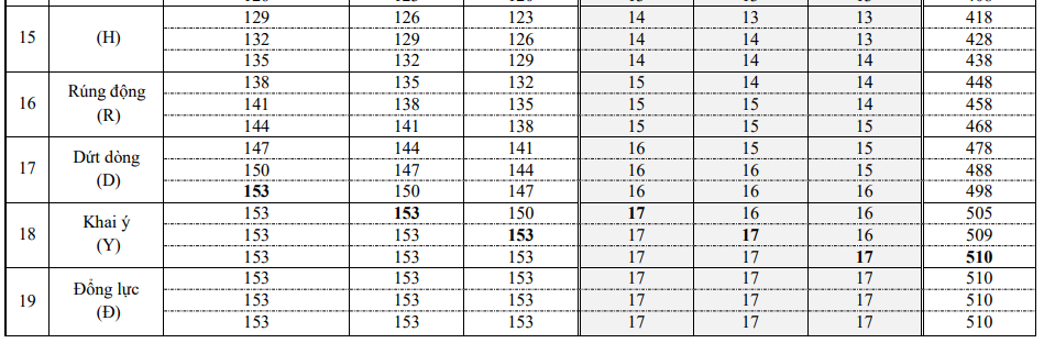 Sau đây xin nói đại ý như vầy: hàng 03 đến hàng 51 đều thêm 10 đến 498 bọn. hàng 52 lên đến 505 bọn vì thêm có 7. hàng 53 lên đến 509 bọn vì thêm có 4. hàng 54 lên đến 510 bọn vì thêm có 1. Khoảng này bình số 510 cho đến gần bọn mạng căn phát sanh. ![]() | |||