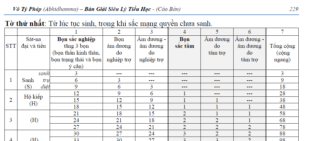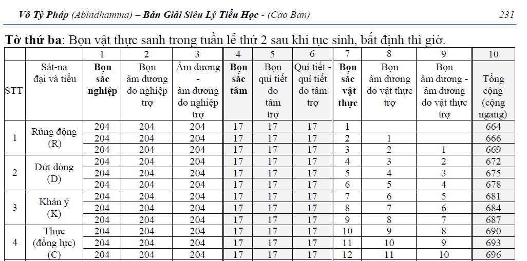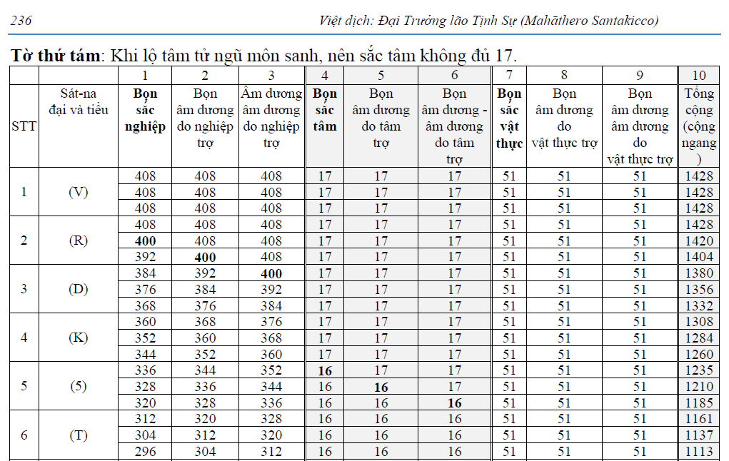 - Tờ thứ ba nói về sắc vật thực từ mới phát sanh cho đến bình số.