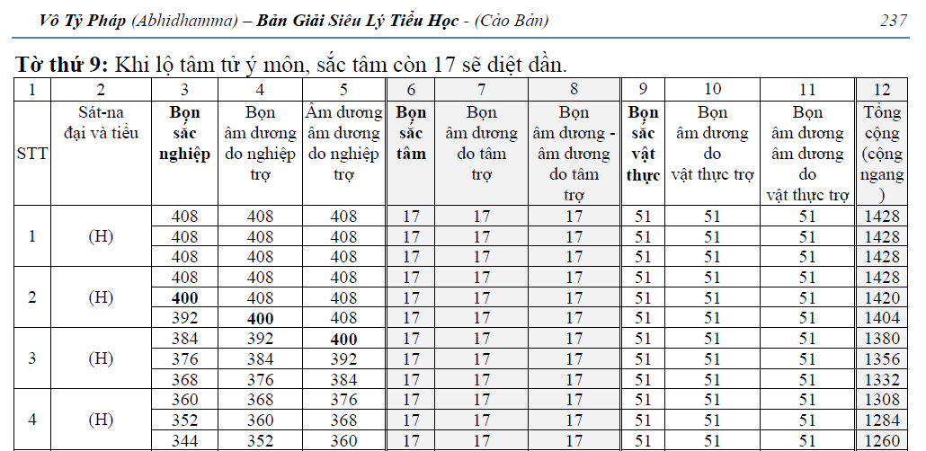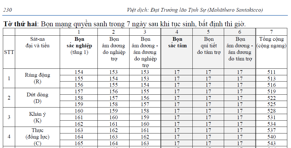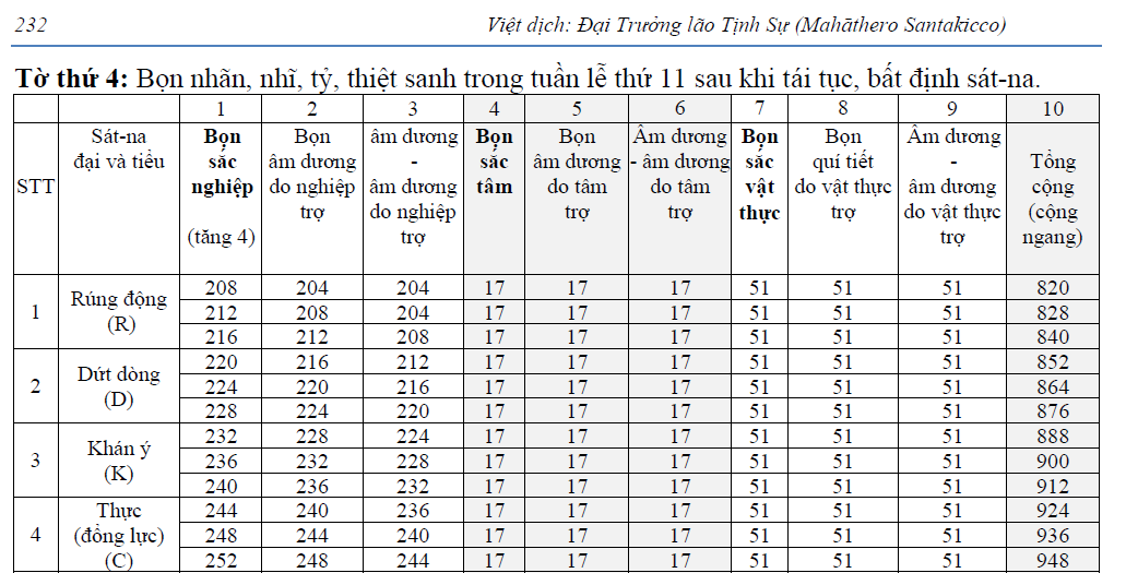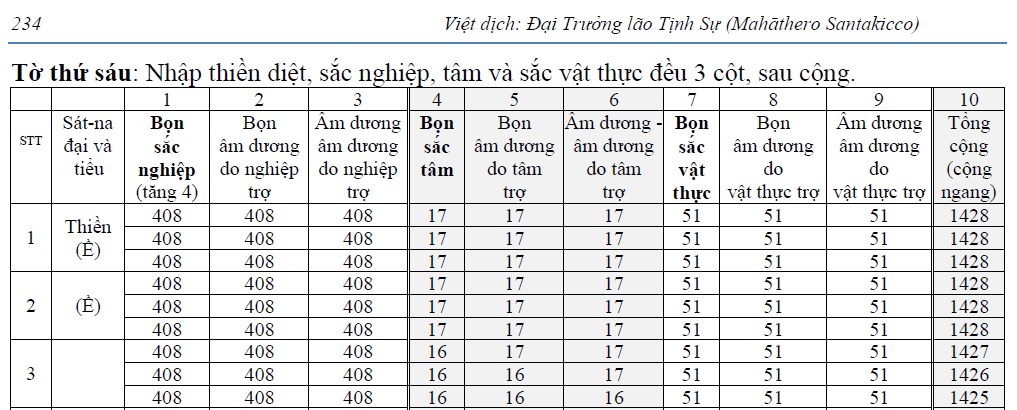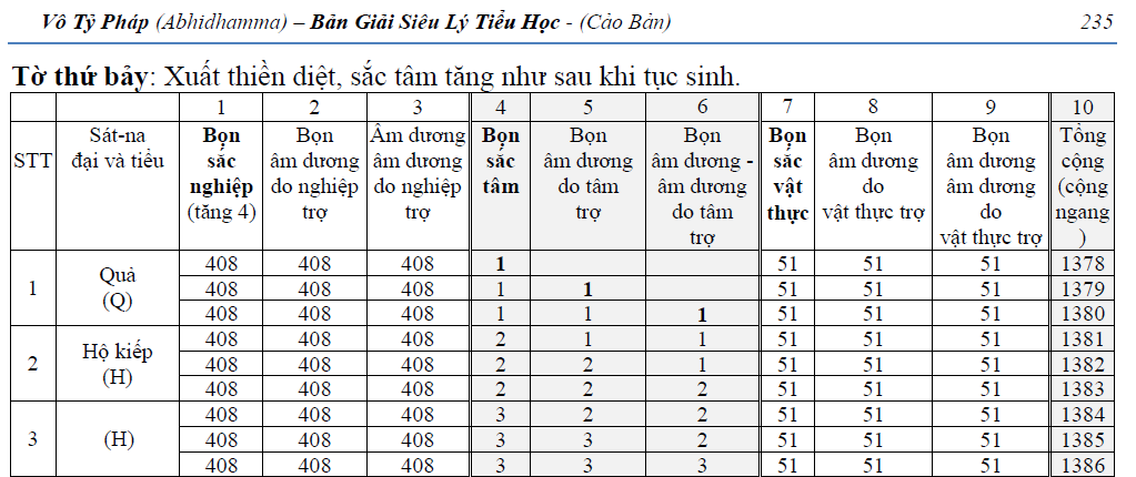 - Tờ thứ bảy nói về xuất thiền diệt tâm sanh lại và sắc tâm tăng đến đủ số.