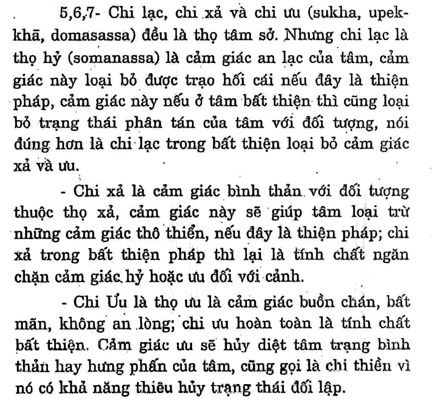4. Thọ (vedanā): Có thể là Lạc thọ (sukha) hay Xả thọ (upekkhā) trong lúc tập trung trên đối tượng.